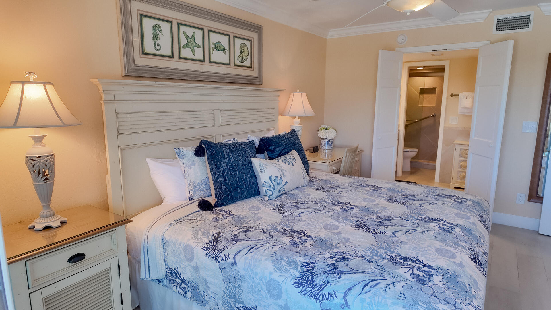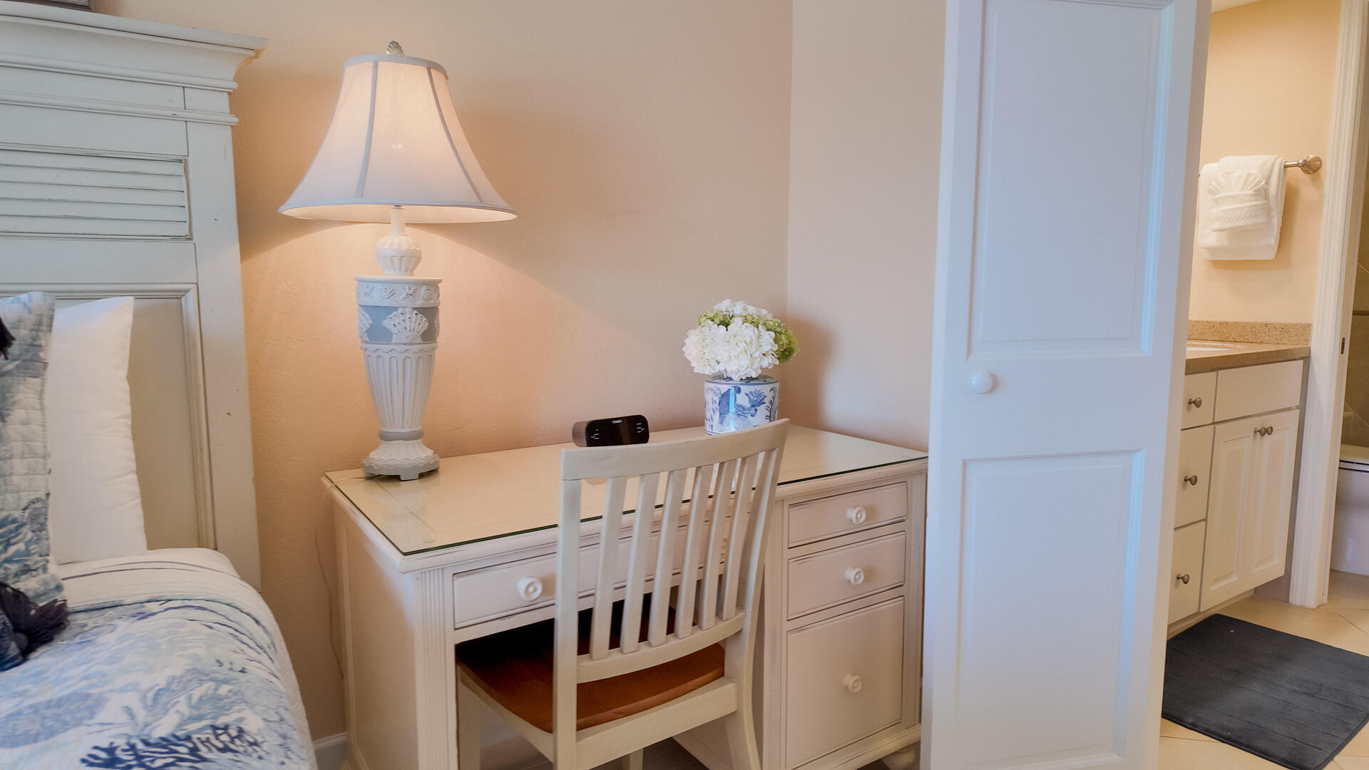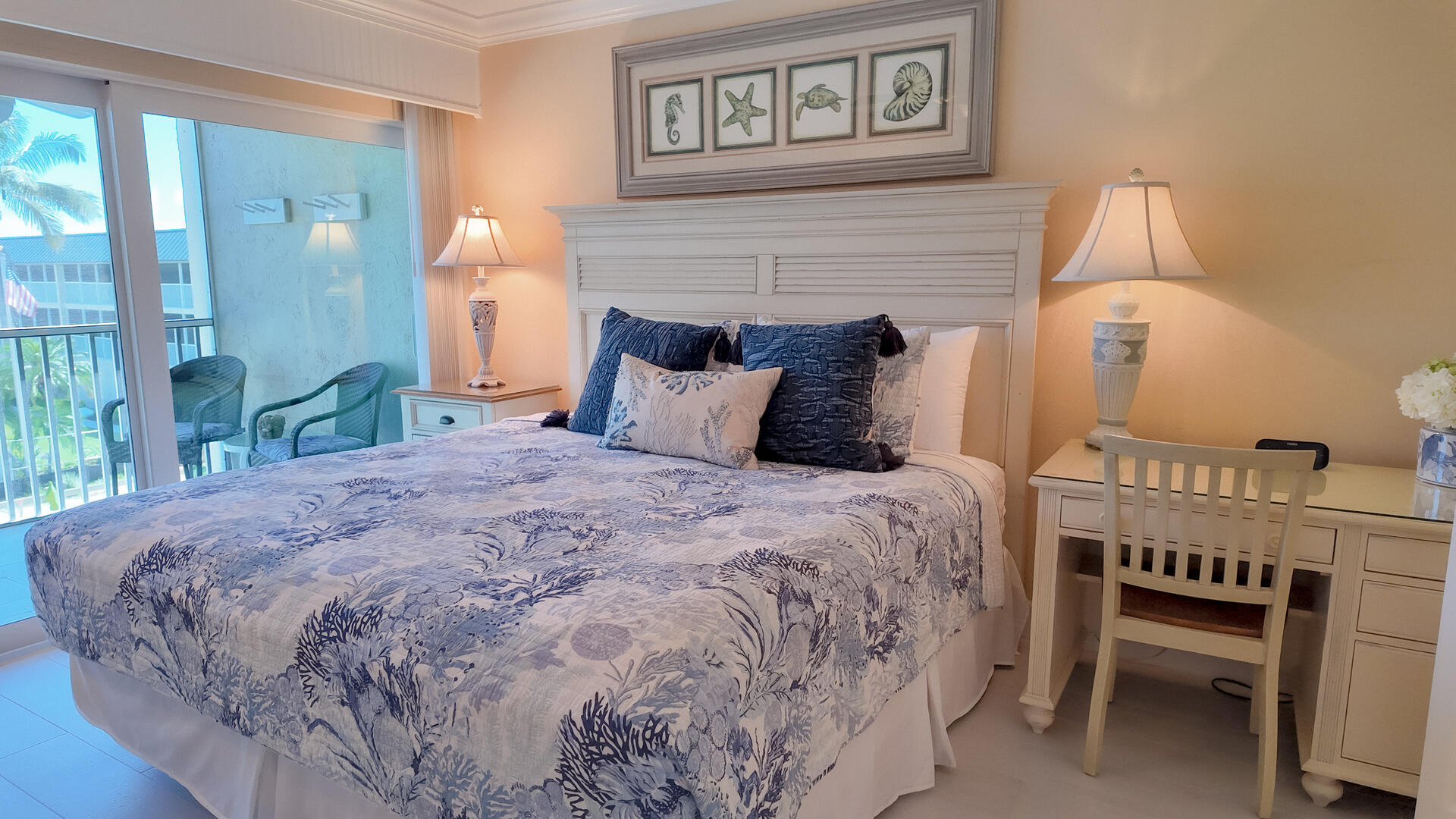 King master bedroom suite has walk-in closet, working office/desk and direct walkout to lanai and gulf view.
