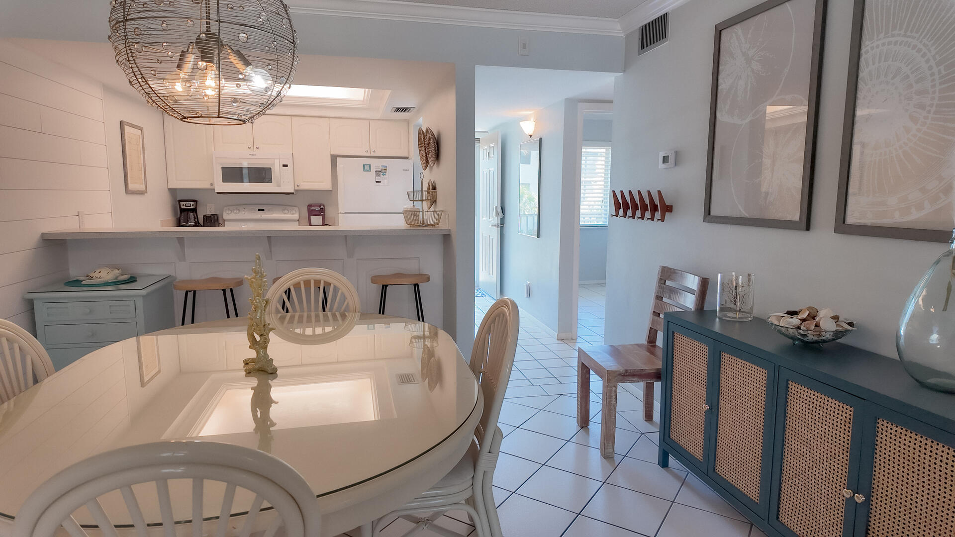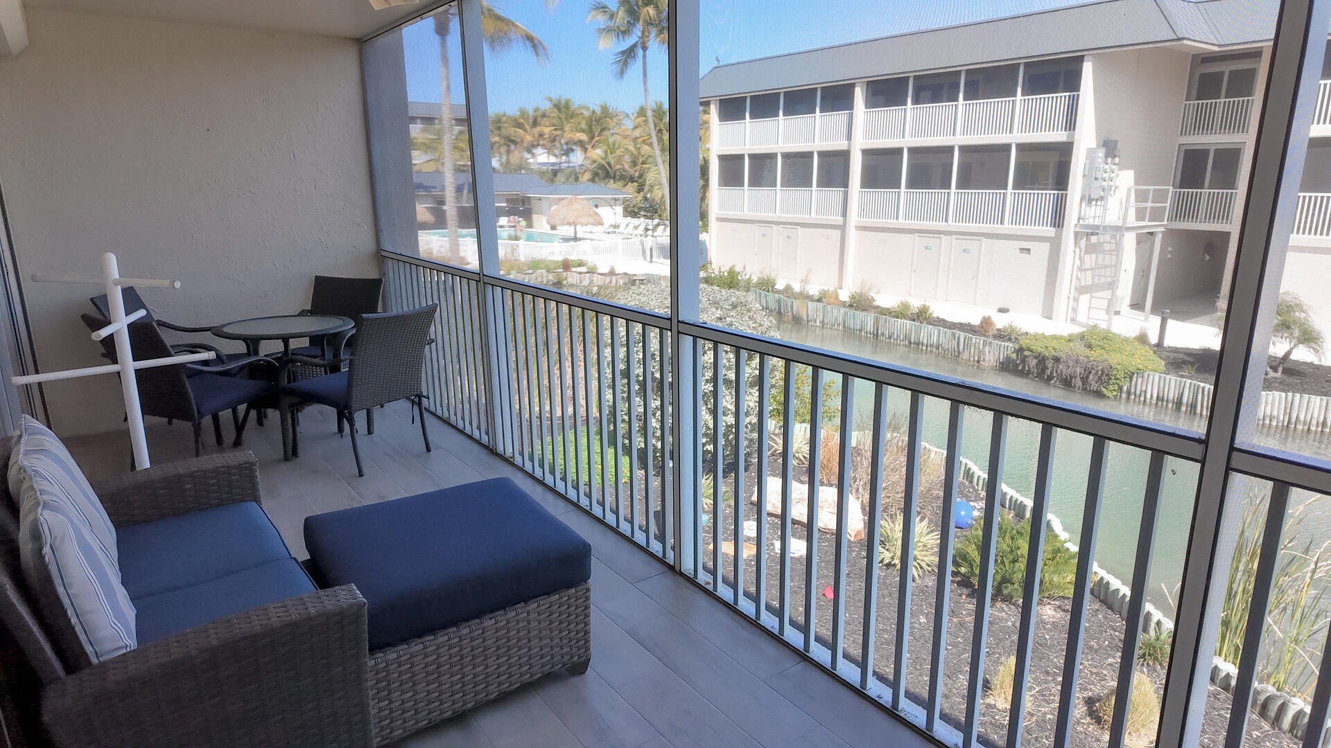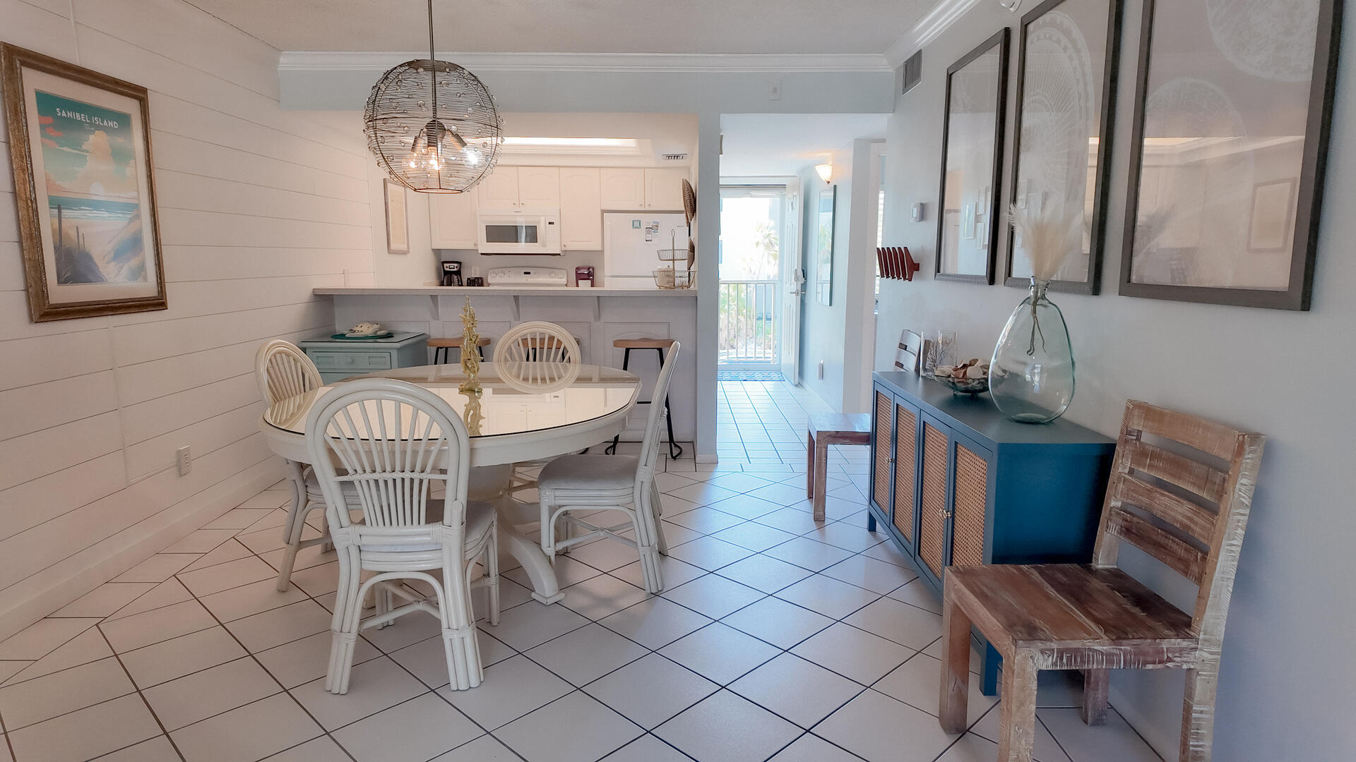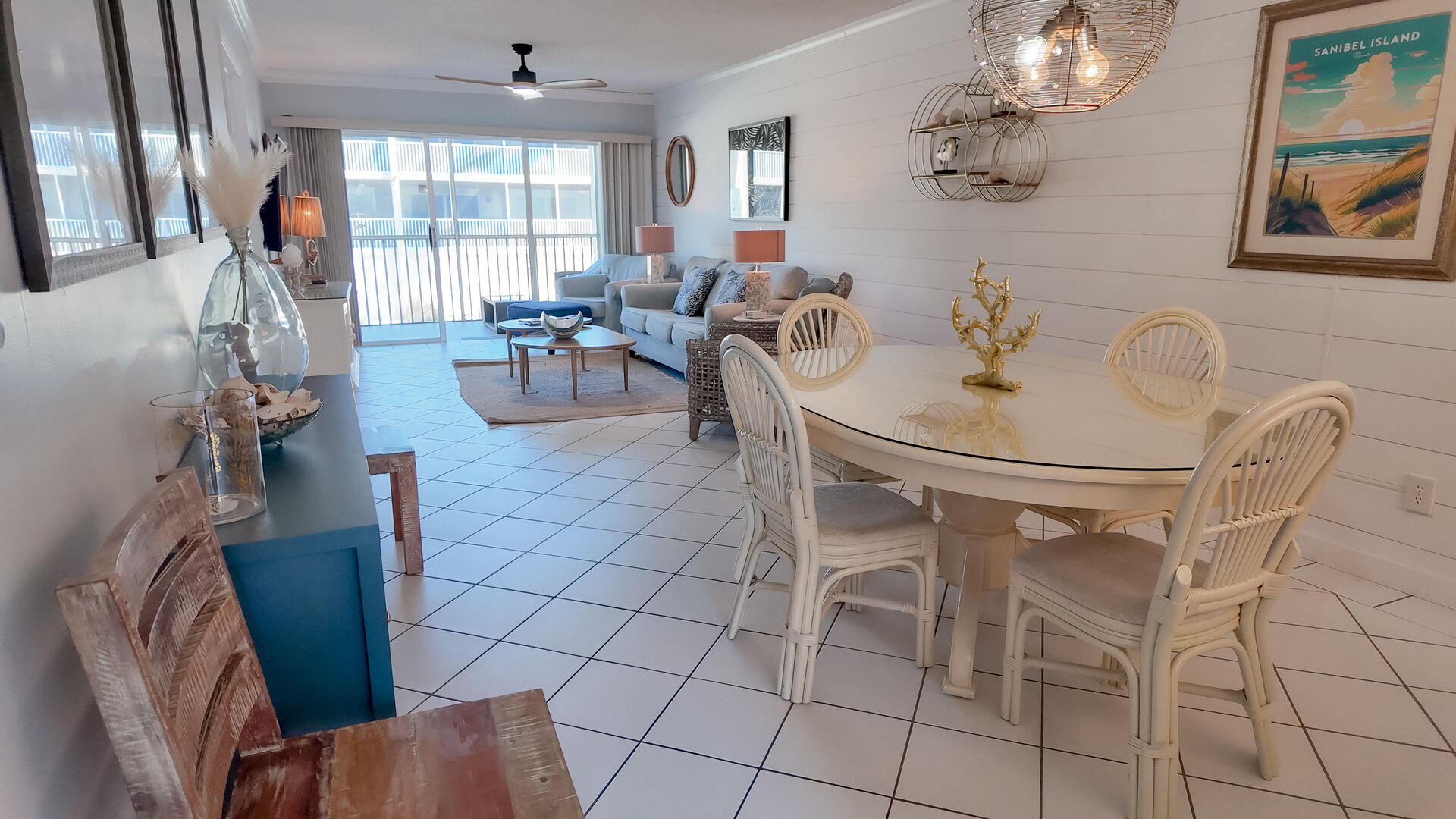 Sanibel Siesta on the Beach, Unit 403. The perfect place to stay for a memorable vacation! Look for starfish on the beach and gaze at the stars at night. Pretty and spacious 2 bed/2 bath non-smoking unit with a beachy theme is just steps to the beach or pool. Enjoy the artwork featuring local birds. The master suite has a king bed with access to a large screened lanai overlooking a tropical pond. The guest bedroom has twin beds but can be made into a king upon request. The large and bright living/dining room also opens onto the large screened lanai. The fully-equipped kitchen has everything you need to prepare a gourmet meal. The walk-in showers with safety bars, and the unit's close proximity to the elevator makes beach living a little easier. Other amenities include ceiling fans throughout, central air, 3 satellite flat-screen TVs, queen-size sleeper sofa, linens, and a starter pack of soaps, paper products and coffee. You will also enjoy your own private garage containing beach chairs, loungers and a beach umbrella for your convenience. Beach towels are available for rent or purchase from our on-site office. Sanibel Siesta offers tennis courts, heated swimming pool, Wifi, bike rentals, shuffleboard, gas grills and laundry facilities, all in a lush tropical setting with amazing sunsets! We are conveniently located within walking distance of a golf course and restaurants. Reservation pricing is based on a party of 4. A $30 daily fee will apply for any 5th or 6th person, a 1-time extra linen charge of $35.00 will apply. Max occupancy is 6 including children and infants. NO PETS.