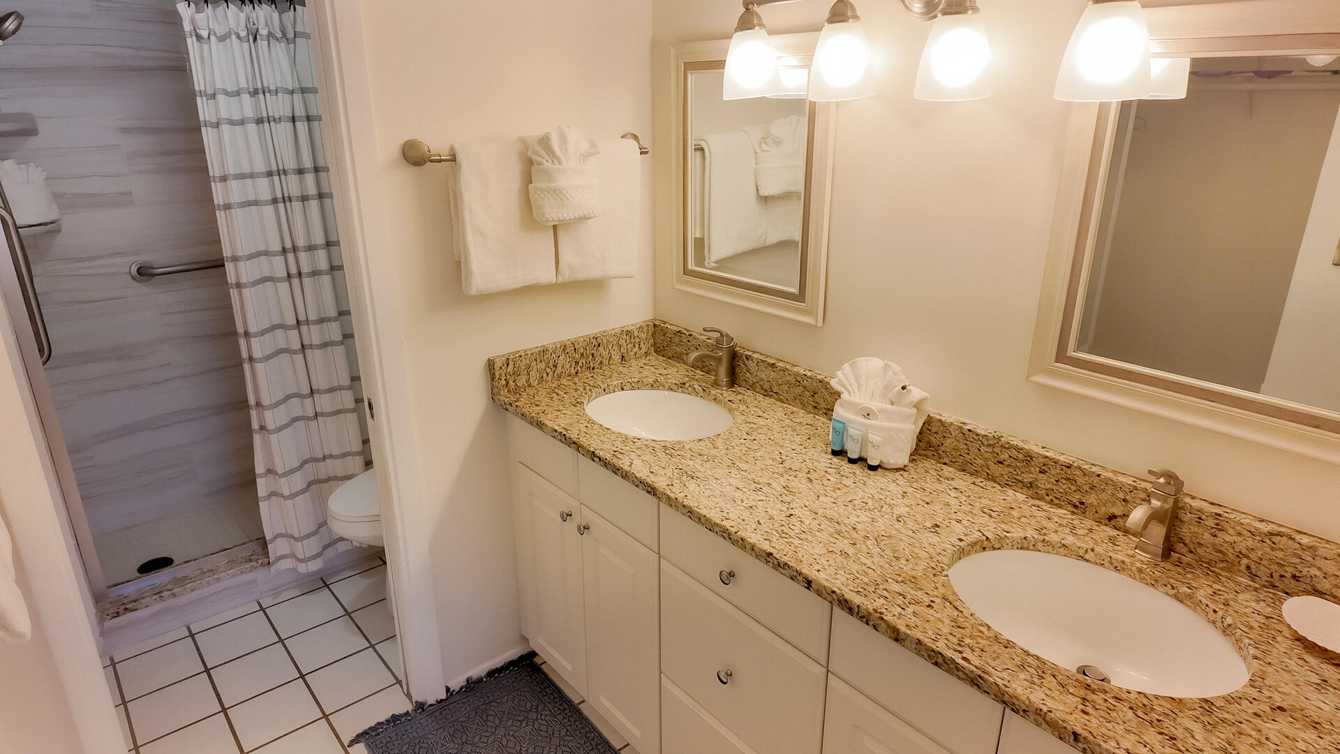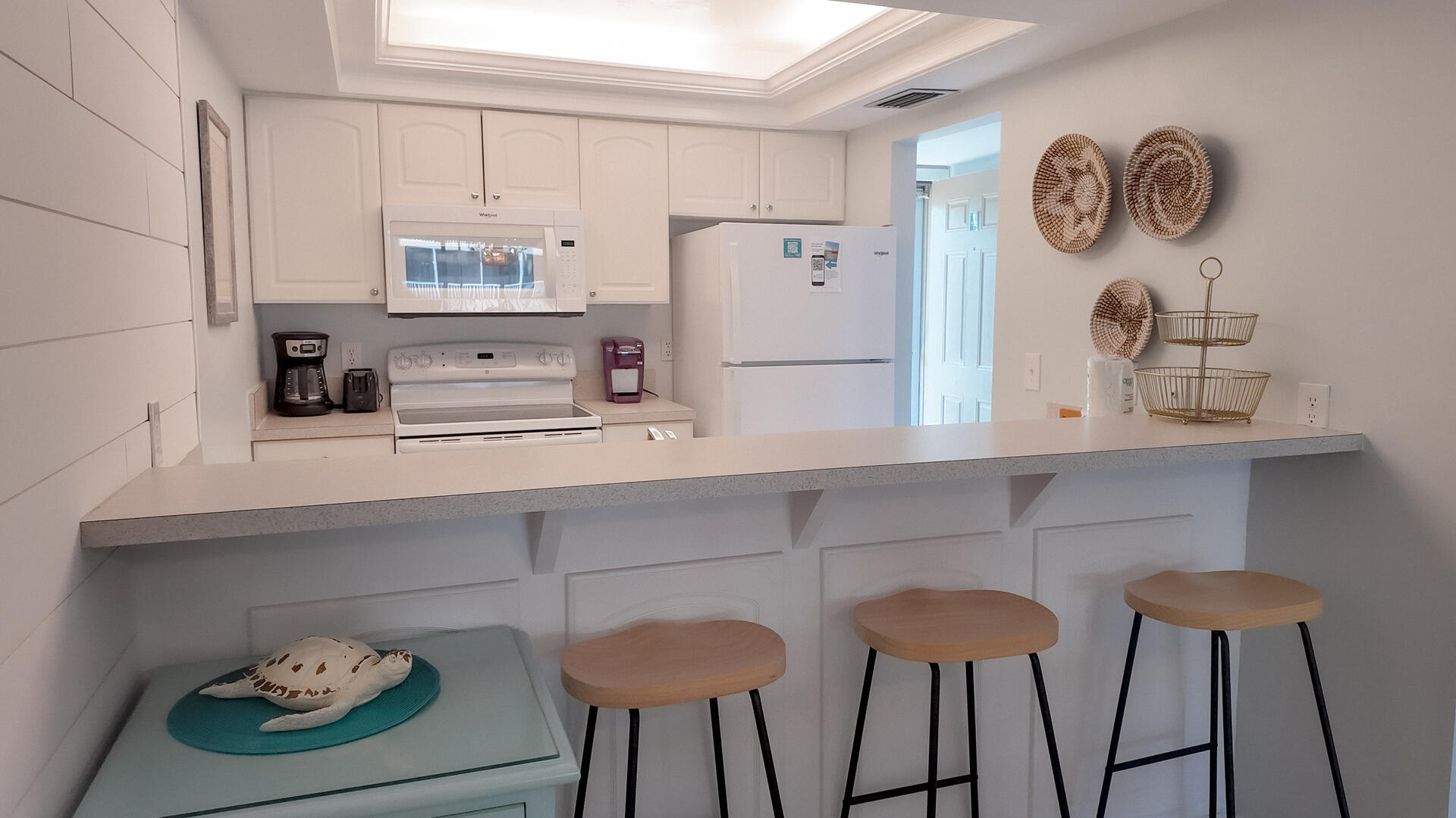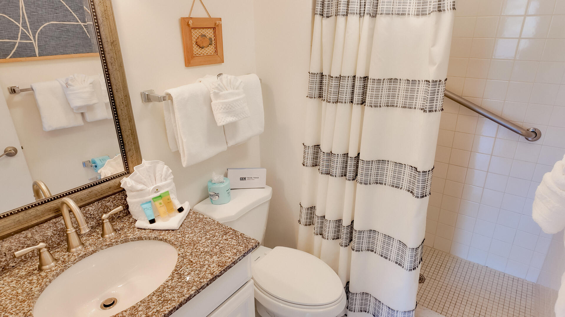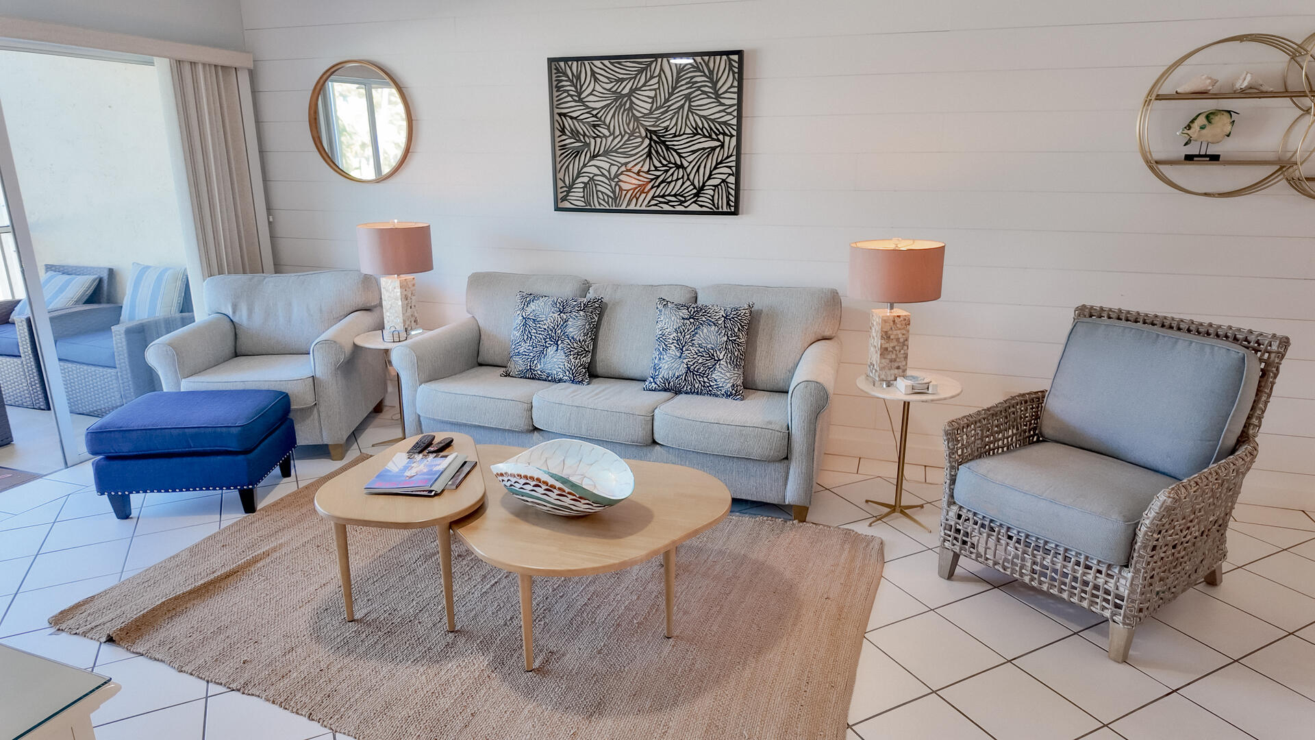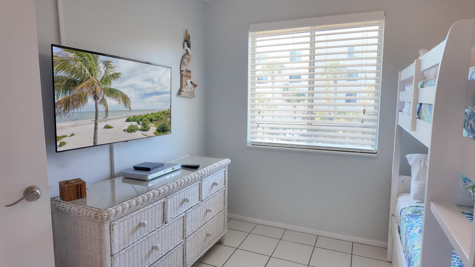 Sanibel Siesta on the Beach, Unit 403. The perfect place to stay for a memorable vacation! Look for starfish on the beach and gaze at the stars at night. Pretty and spacious 2 bed/2 bath non-smoking unit with a beachy theme is just steps to the beach or pool. Enjoy the artwork featuring local birds. The master suite has a king bed with access to a large screened lanai overlooking a tropical pond. The guest bedroom has twin beds but can be made into a king upon request. The large and bright living/dining room also opens onto the large screened lanai. The fully-equipped kitchen has everything you need to prepare a gourmet meal. The walk-in showers with safety bars, and the unit's close proximity to the elevator makes beach living a little easier. Other amenities include ceiling fans throughout, central air, 3 satellite flat-screen TVs, queen-size sleeper sofa, linens, and a starter pack of soaps, paper products and coffee. You will also enjoy your own private garage containing beach chairs, loungers and a beach umbrella for your convenience. Beach towels are available for rent or purchase from our on-site office. Sanibel Siesta offers tennis courts, heated swimming pool, Wifi, bike rentals, shuffleboard, gas grills and laundry facilities, all in a lush tropical setting with amazing sunsets! We are conveniently located within walking distance of a golf course and restaurants. Reservation pricing is based on a party of 4. A $30 daily fee will apply for any 5th or 6th person, a 1-time extra linen charge of $35.00 will apply. Max occupancy is 6 including children and infants. NO PETS.