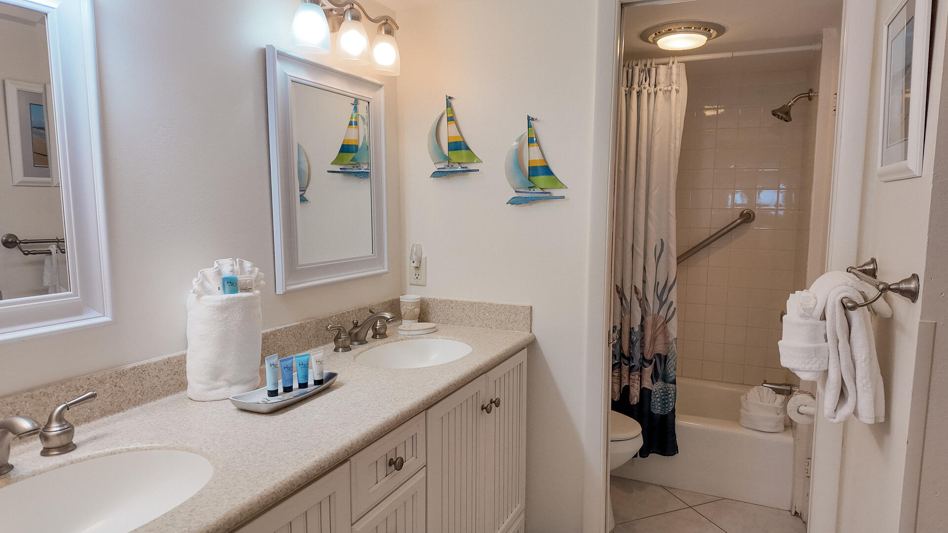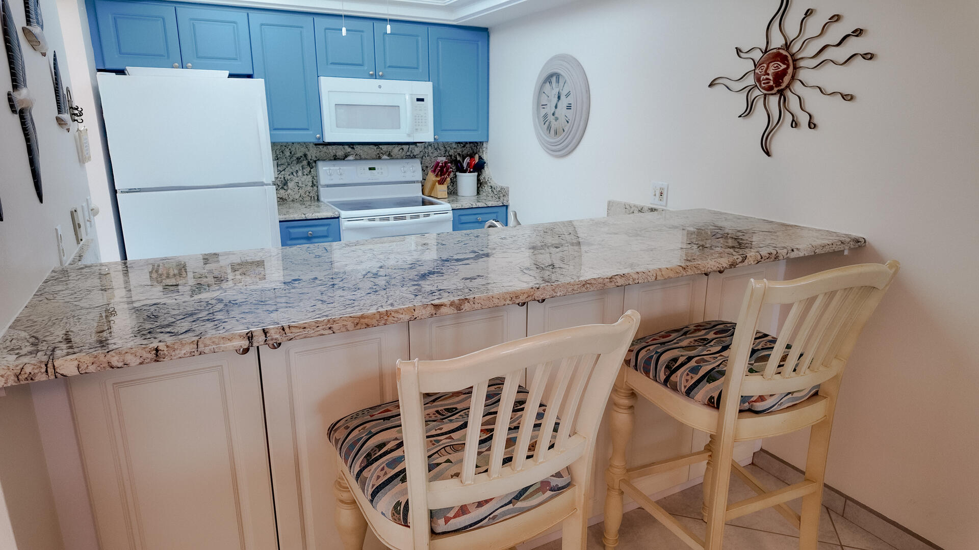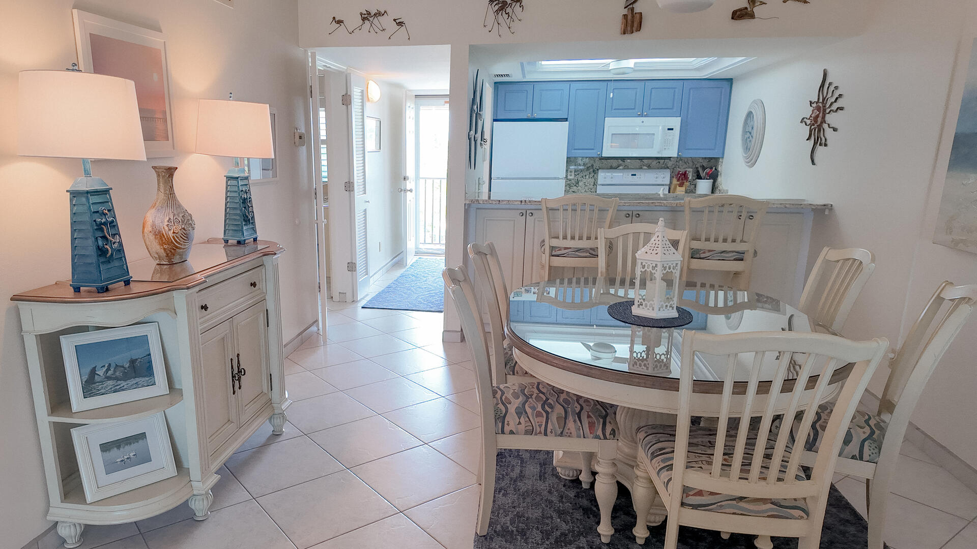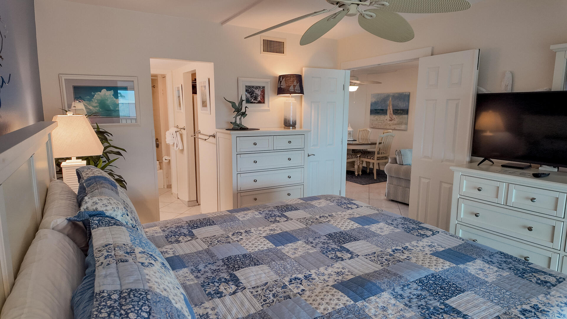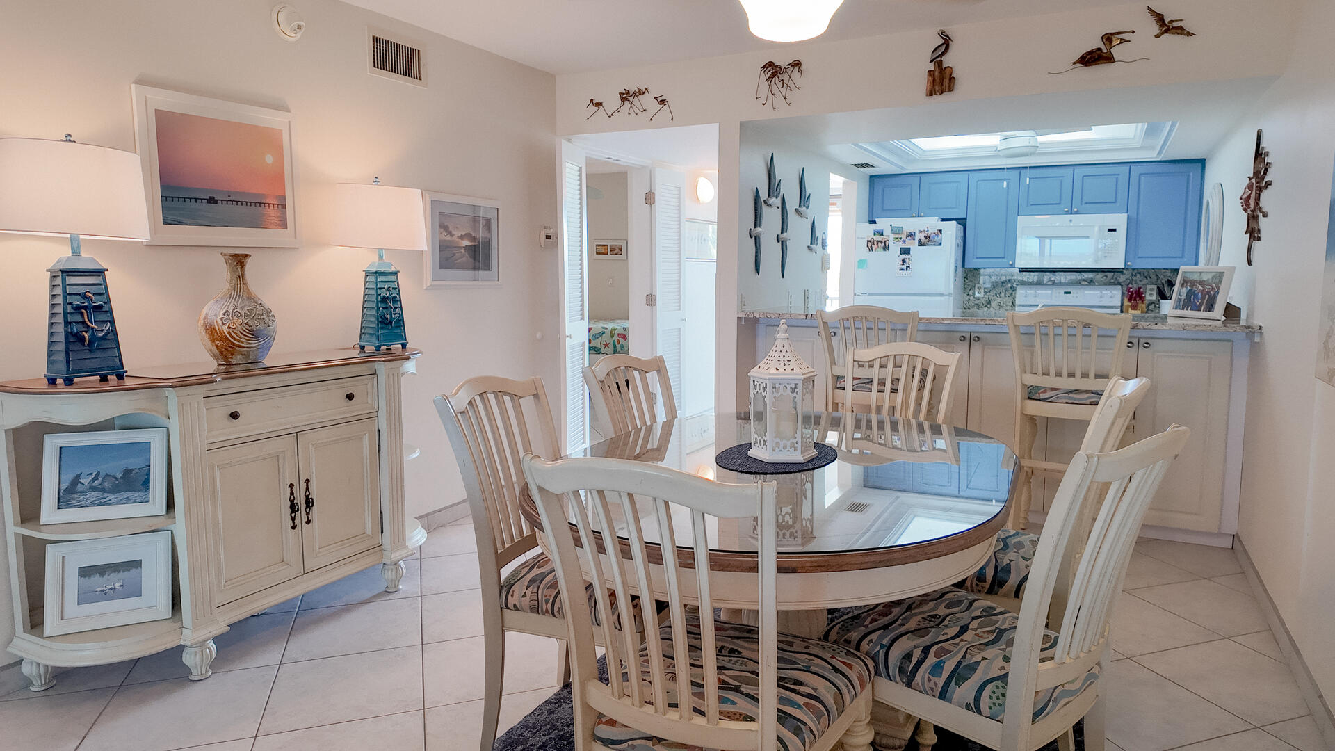 Sanibel Siesta on the Beach. Unit 211. Magnificent front view of the beautiful Gulf of Mexico from this 4th floor condo! This unit has a tropical theme with lots of little extras to make your stay special. This spacious 2 bed/2 bath non-smoking unit features all the comforts of home and is an easy walk to the beach and pool. The master suite has a king bed and access to a large screened lanai. The guest bedroom has doors which can connect to create an en suite. It also has twin beds but can be made into a king upon request. The fully equipped kitchen has everything you need to prepare a gourmet meal. Other amenities include ceiling fans throughout, central air, 3 satellite flat-screen TVs with DVD/VCR, linens and a starter pack of soaps, paper products and coffee. Beach chairs and a beach umbrella are provided for your convenience. Beach towels are available for rent or purchase from our on-site office. Sanibel Siesta offers tennis courts, heated swimming pool, WiFi, bike rentals, shuffleboard, gas grills, laundry facilities and elevators, all in a lush tropical setting with amazing sunsets! We are conveniently located within walking distance of a golf course and restaurants. Reservation pricing is based on a party of 4. A $30 daily fee will apply for any 5th or 6th person, a 1-time extra linen charge of $35.00 will apply. Max occupancy is 4 including children and infants. NO PETS.
