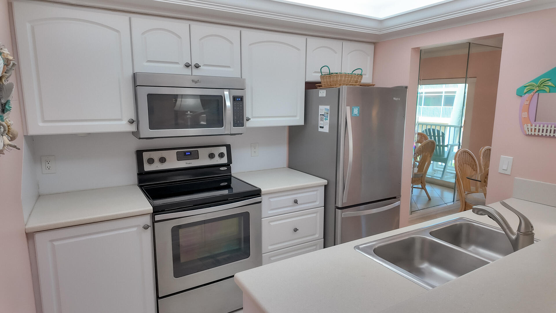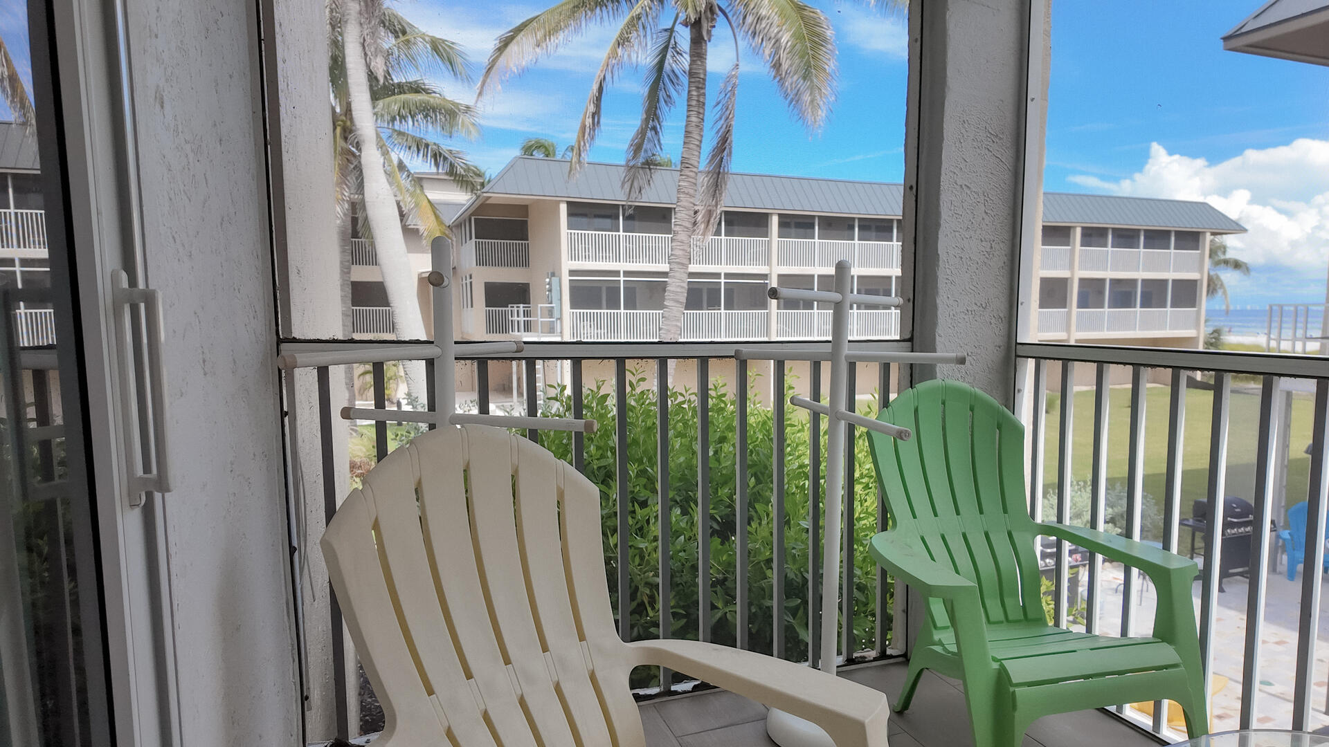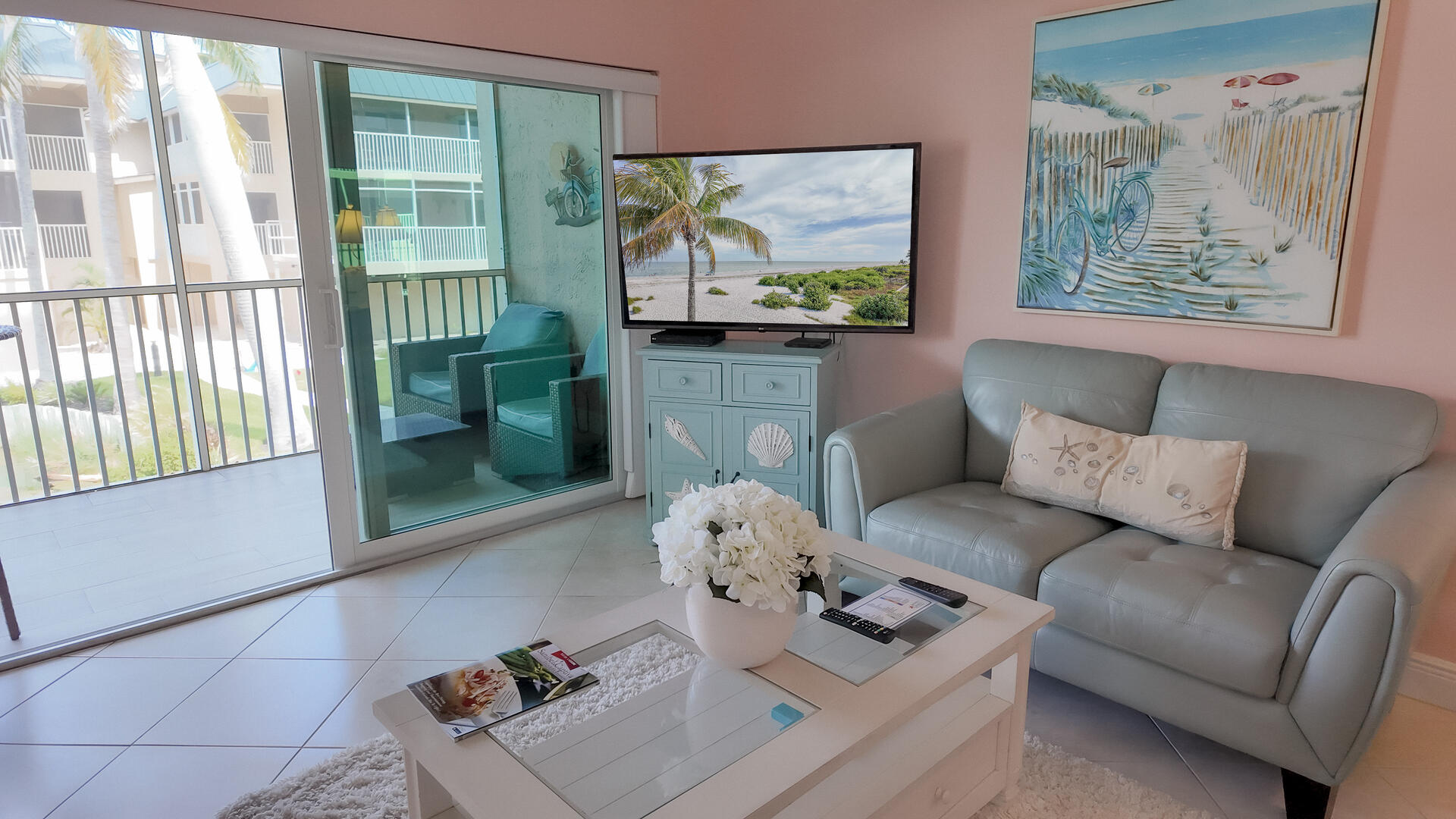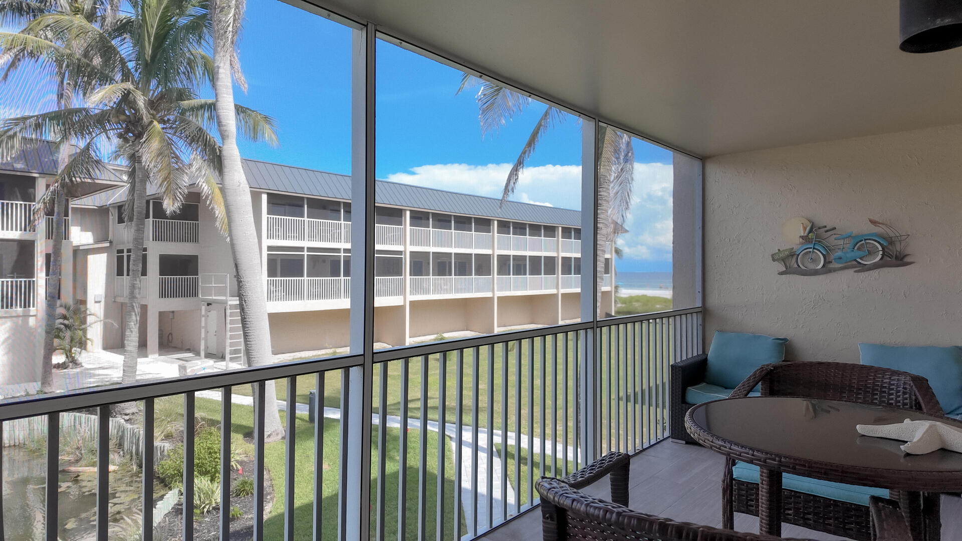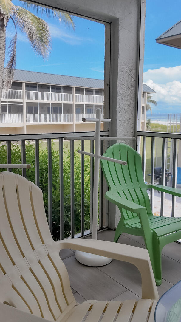 Sanibel Siesta on the Beach, Unit 404. The perfect beach vacation condo! Beautiful decor with a colorful and tropical theme throughout. You will love the two lanais which offer a wonderful view of the gulf and beach. Sugar white beach and magnificent shelling just steps away. This spacious, second floor 2 bed/2 bath non-smoking condo features all the comforts of home plus everything Sanibel Island has to offer. The master suite has a king bed and access to a private screened lanai which offers a great view of the beautiful Gulf of Mexico! The guest room has twin beds but can be made into a king upon request. The large and bright living/dining room leads to a large screened lanai overlooking a tropical pond. The fully equipped kitchen features quartz counters and stainless-steel appliances with Keurig and Mr. Coffee pots and ice maker in freezer. Other amenities include ceiling fans, central air, 3 satellite flat-screen TVs, queen-size sleeper sofa, linens, and a starter pack of soaps, paper products and coffee. You will enjoy your own private garage containing beach chairs and beach umbrella for your convenience. Beach towels are available for purchase or rent from our on-site office. Sanibel Siesta offers tennis courts, heated swimming pool, WiFi, bike rentals, shuffleboard, gas grills, laundry facilities and elevators, all in a lush tropical setting with amazing sunsets! We are conveniently located within walking distance of a golf course and restaurants. Have the best time of your life on this paradise isle! Reservation pricing is based on a party of 4. A $30 daily fee will apply for any 5th or 6th person, a 1-time extra linen charge of $35.00 will apply. Max occupancy is 4 including children and infants. No pets.
