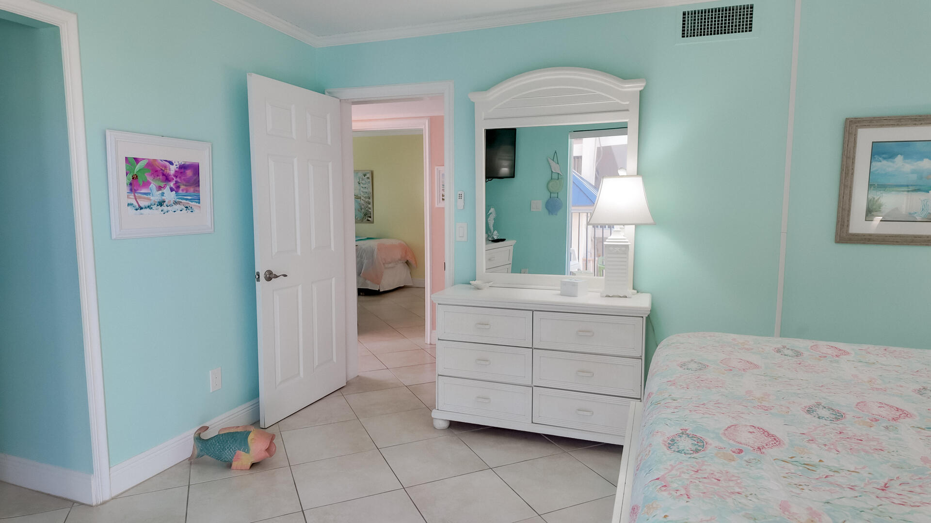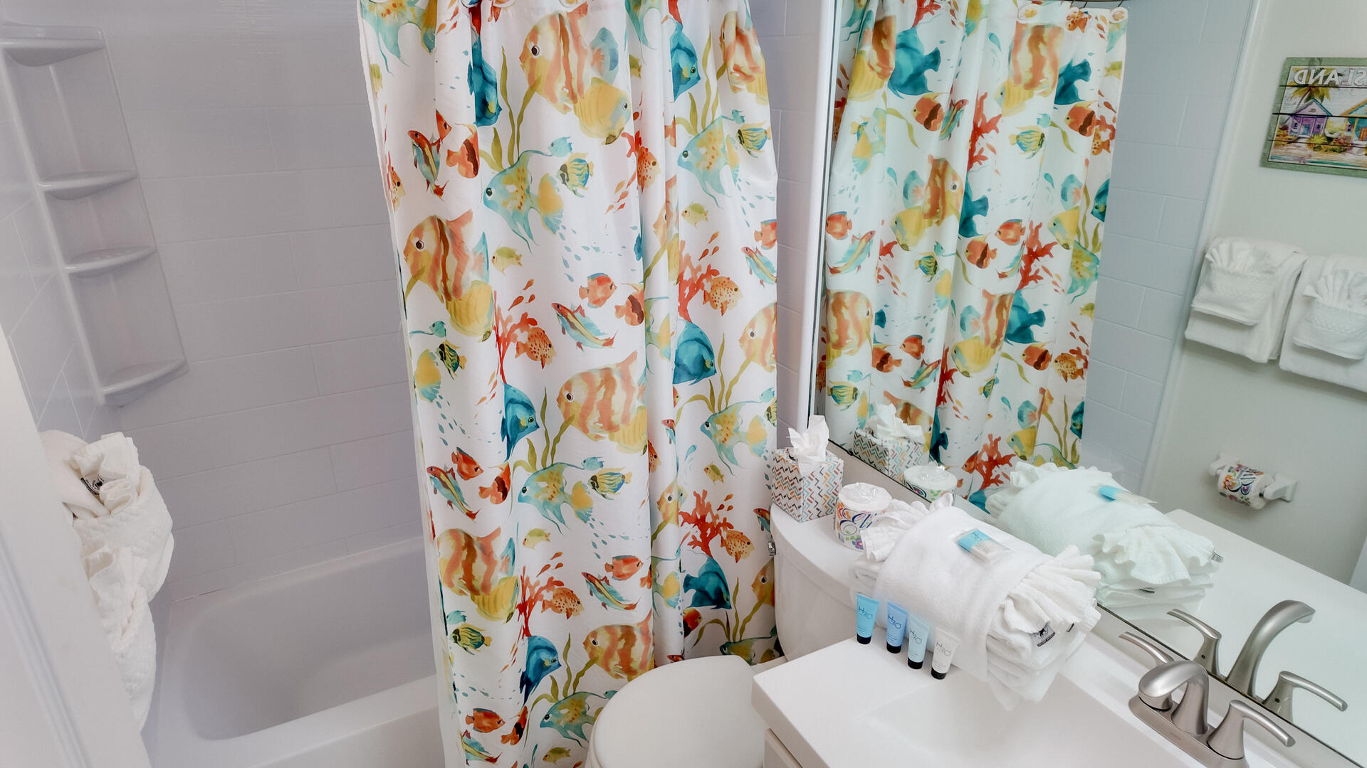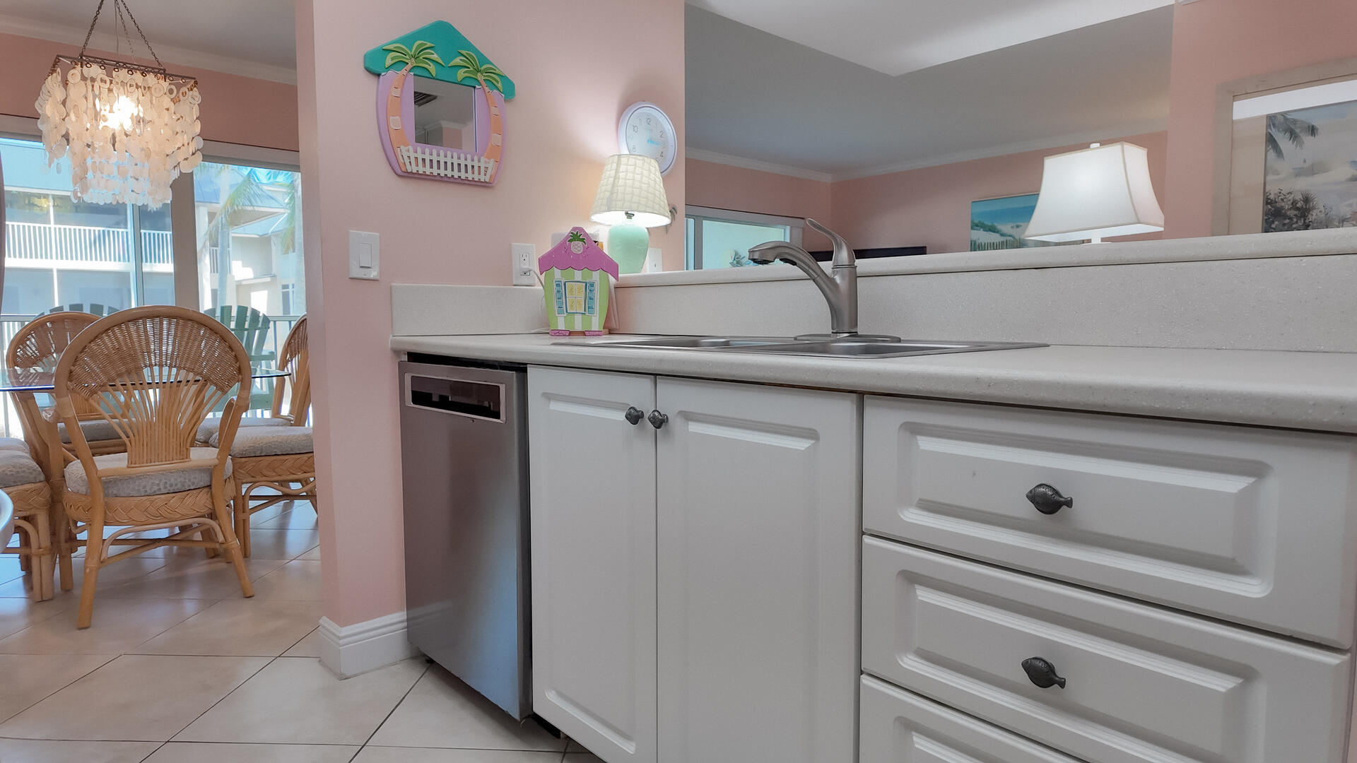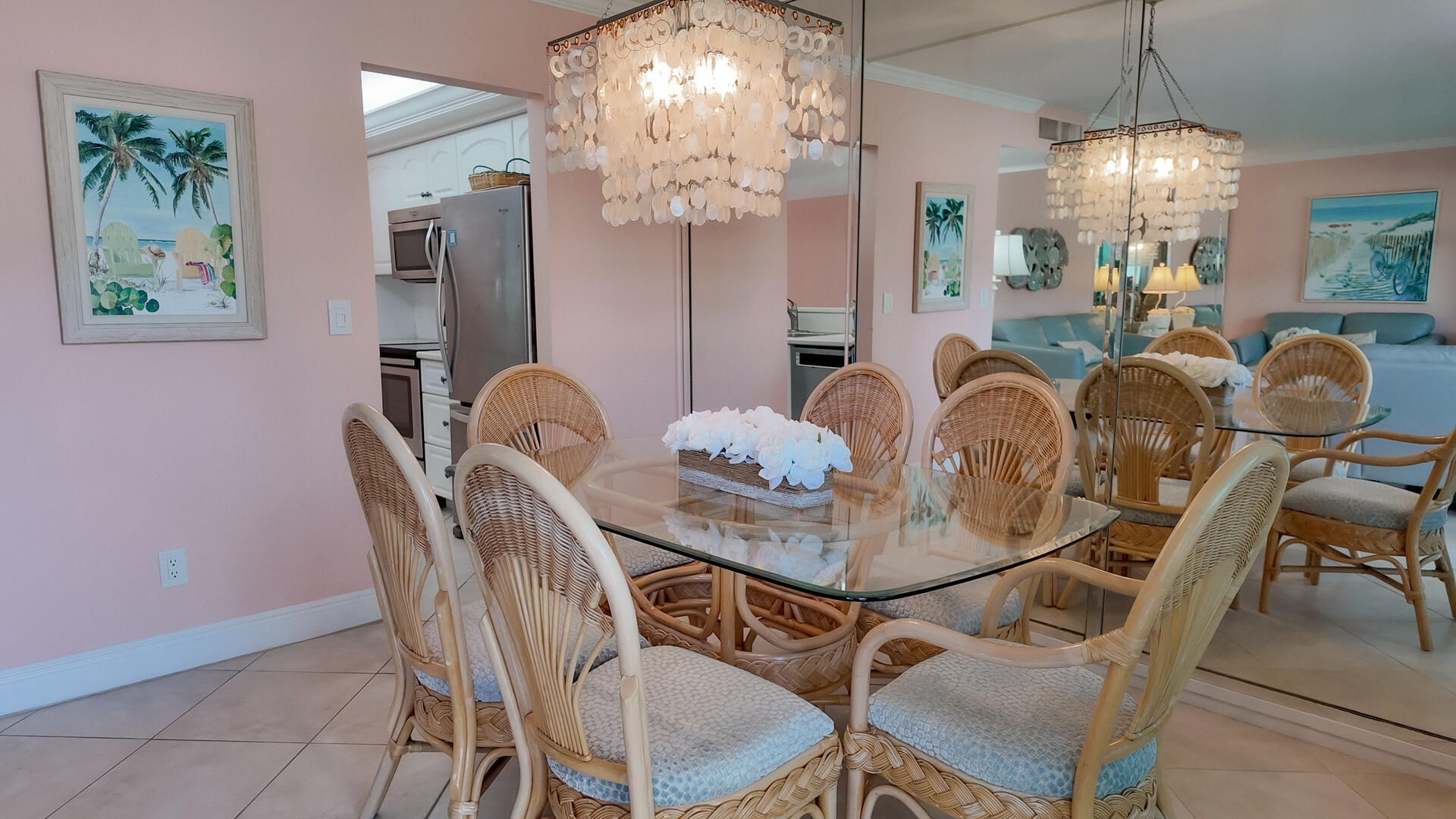 Sanibel Siesta on the Beach, Unit 404. The perfect beach vacation condo! Beautiful decor with a colorful and tropical theme throughout. You will love the two lanais which offer a wonderful view of the gulf and beach. Sugar white beach and magnificent shelling just steps away. This spacious, second floor 2 bed/2 bath non-smoking condo features all the comforts of home plus everything Sanibel Island has to offer. The master suite has a king bed and access to a private screened lanai which offers a great view of the beautiful Gulf of Mexico! The guest room has twin beds but can be made into a king upon request. The large and bright living/dining room leads to a large screened lanai overlooking a tropical pond. The fully equipped kitchen features quartz counters and stainless-steel appliances with Keurig and Mr. Coffee pots and ice maker in freezer. Other amenities include ceiling fans, central air, 3 satellite flat-screen TVs, queen-size sleeper sofa, linens, and a starter pack of soaps, paper products and coffee. You will enjoy your own private garage containing beach chairs and beach umbrella for your convenience. Beach towels are available for purchase or rent from our on-site office. Sanibel Siesta offers tennis courts, heated swimming pool, WiFi, bike rentals, shuffleboard, gas grills, laundry facilities and elevators, all in a lush tropical setting with amazing sunsets! We are conveniently located within walking distance of a golf course and restaurants. Have the best time of your life on this paradise isle! Reservation pricing is based on a party of 4. A $30 daily fee will apply for any 5th or 6th person, a 1-time extra linen charge of $35.00 will apply. Max occupancy is 4 including children and infants. No pets.