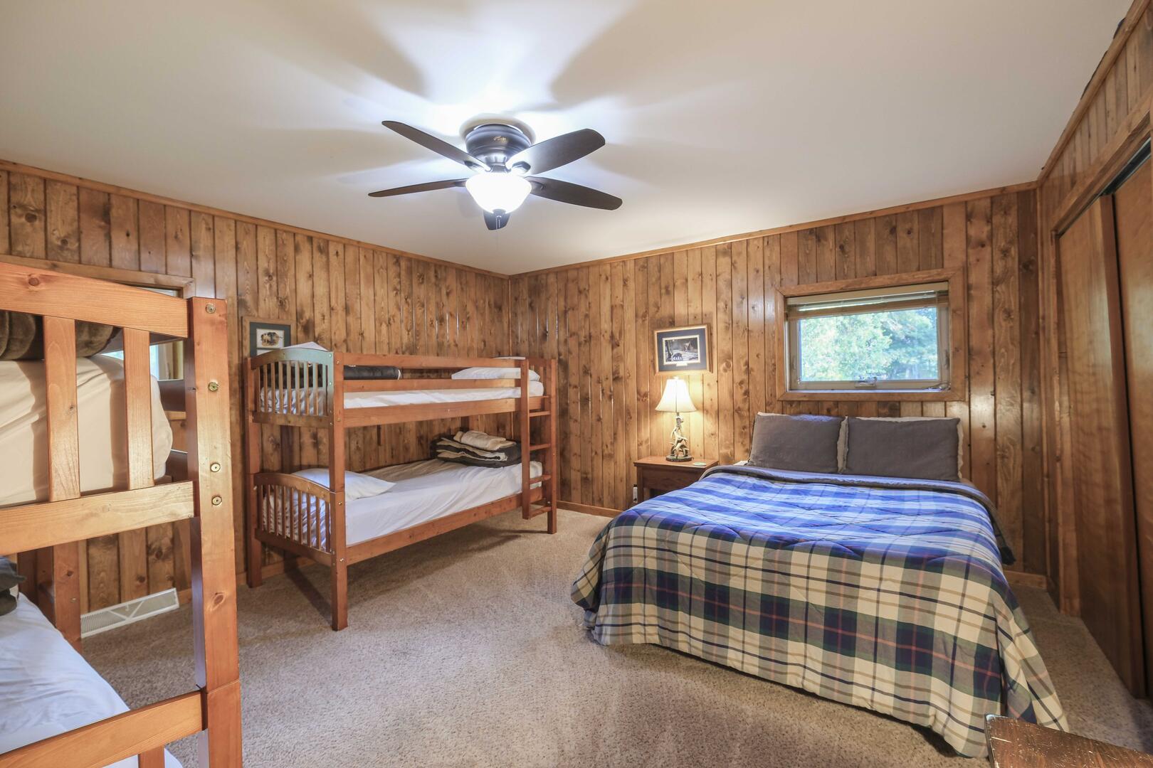 Room#3 Queen bed and two bunk beds (with a total of 4 twin mattresses)