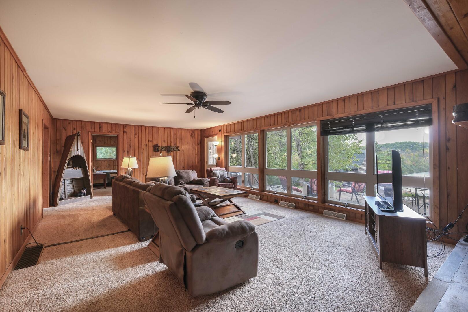 Enjoy breathtaking views of Lac Courte Oreilles from our large patio, or large living room, or master bedroom, or out the den area. All have large multiple windows for you to watch and see what's going on outside. See spectacular sunsets and interesting wildlife. Last year there was a pair of bald eagles with us most of the year, and we expect them to return. You can watch them perched high atop a big white pine tree and then see them swoon down to pick up fish from the lake. In the early morning from our property you can also see loons, all kinds of ducks and geese, and occasionally even a bear.